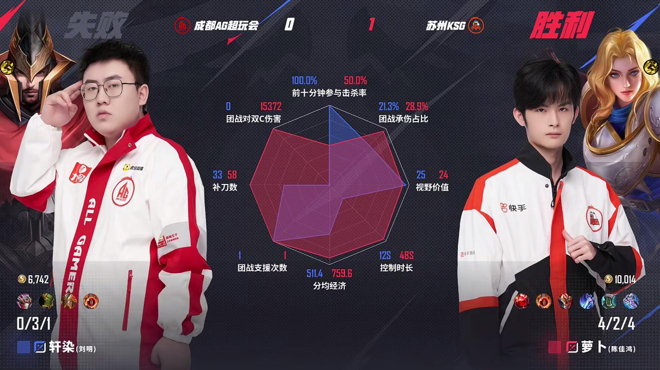成都AG超玩会 0-1 苏州KSG,本场选手表现你打几分?