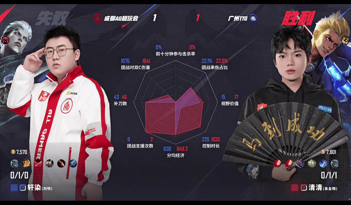 成都AG超玩会 1-1 广州TTG,本场选手表现你打几分?