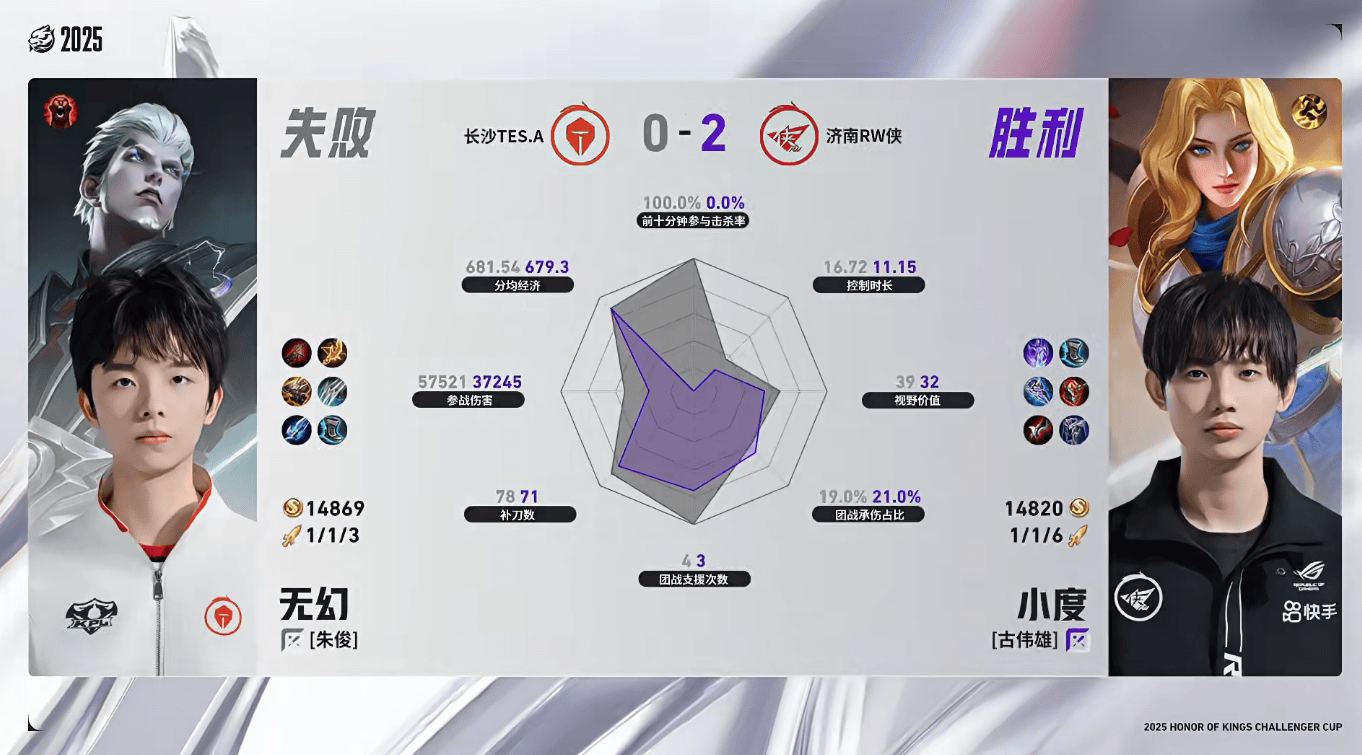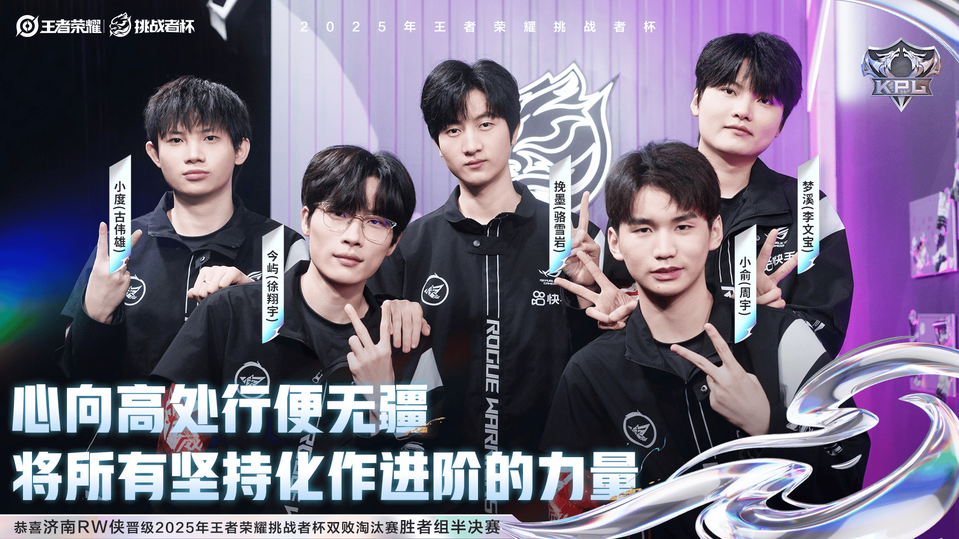 恭喜济南RW侠晋级2025王者荣耀挑杯双败淘汰赛胜者组半决赛