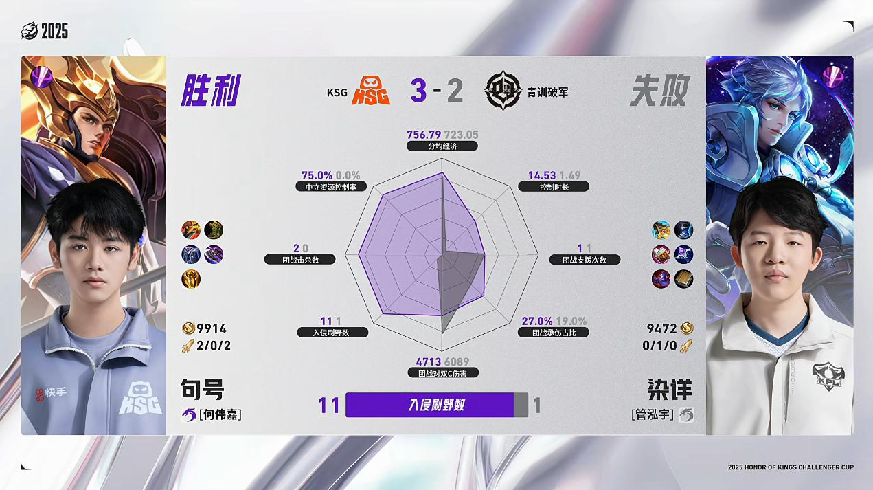 KSG 1-1 青训破军,本场选手表现你打几分?
