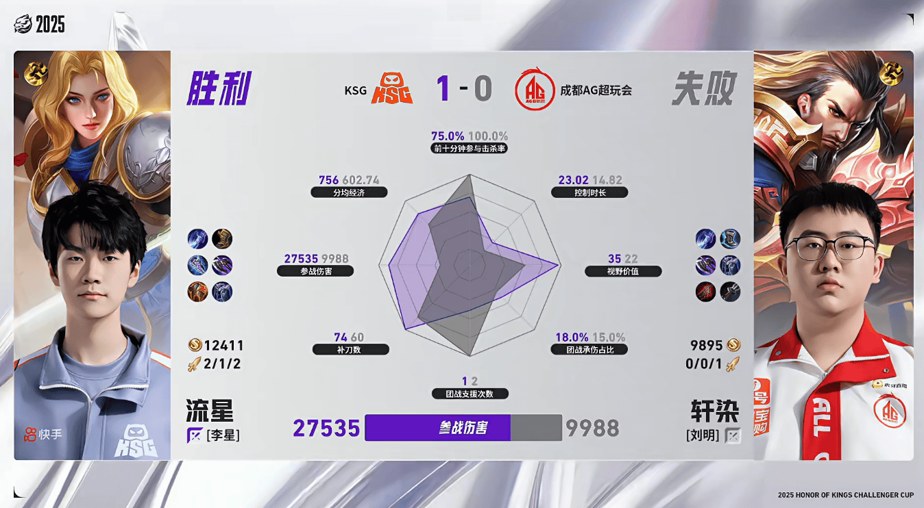 KSG/AG第一局数据对比:风箫苍几乎全数据包围一诺虞姬