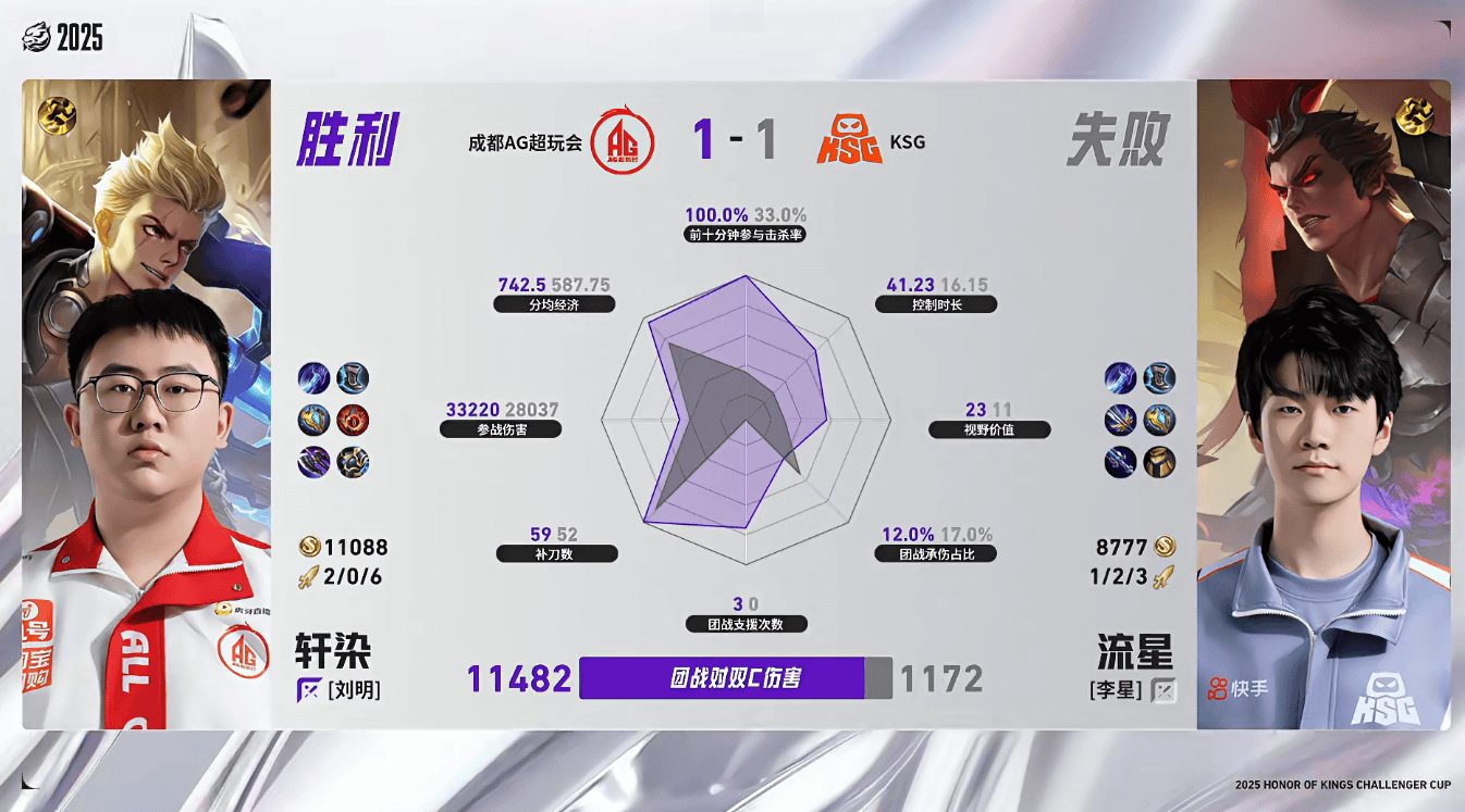 AG/KSG第二局数据对比:轩染狂铁近乎全方位包围流星吕布
