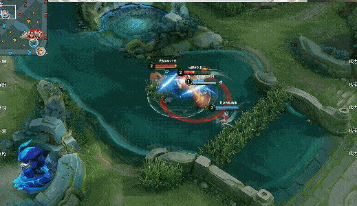 敖隐蹲草看到马超视野,WB两人包夹击杀轩染,拿到一血