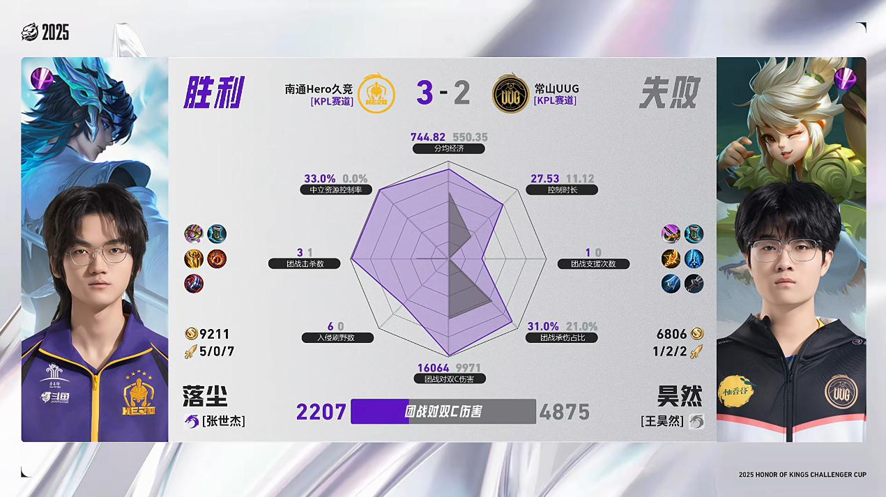 Hero/UUG第5局数据对比:落尘大司命将昊然阿古朵打成“B”