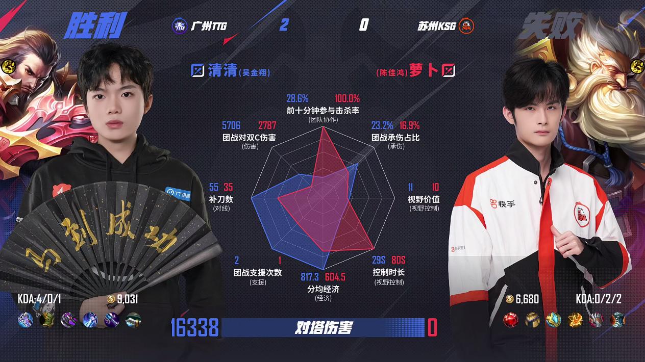 TTG/KSG第2局数据对比:佳心全包围句号,萝卜对塔伤害为0