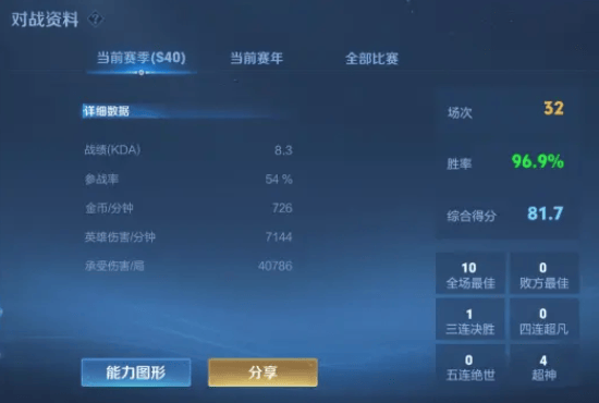 钻石二32场就上了王者,这KDA可否夸一夸?
