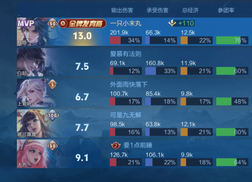 第三轮第二周TOP5:九尾嬴政闪现进攻斩获三杀,钟意云缨控到多人关键输出