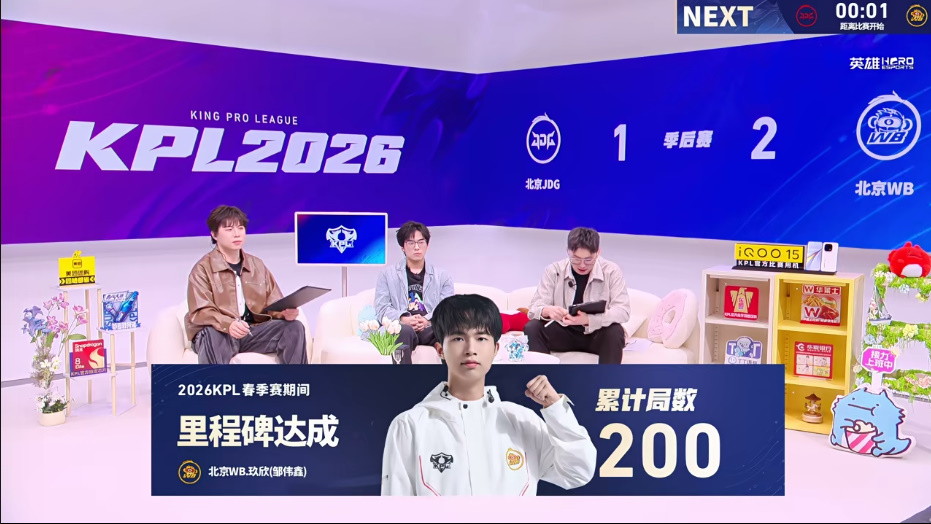 第三局比赛中,北京WB.玖欣达成里程碑:累计200局数