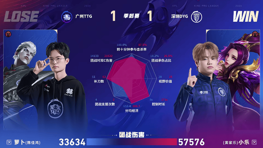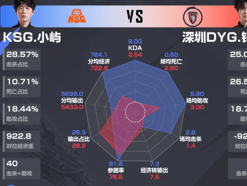 KSG 4:1 深圳DYG赛后雷达图,哪组差距最大?
