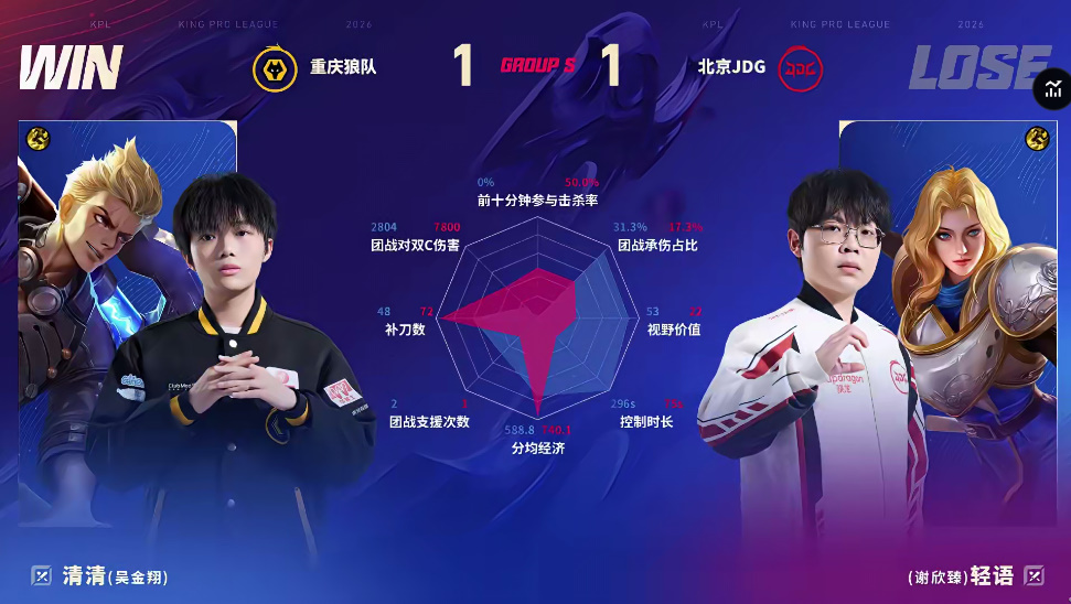 北京JDG 1-1 重庆狼队,本场选手表现你打几分?