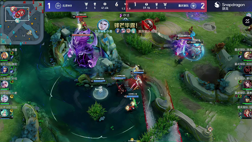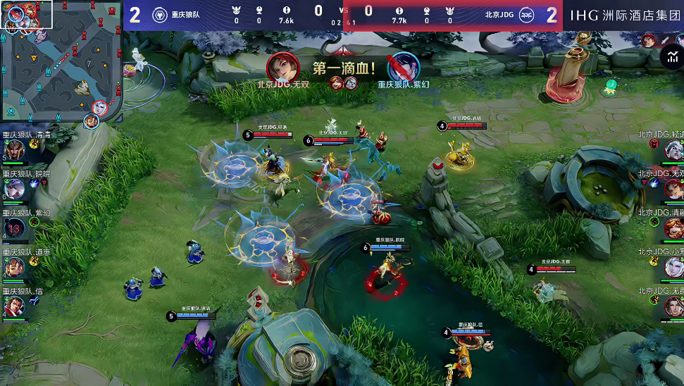 蓝区爆发团战,关羽达摩相继发力狼队打出2换2