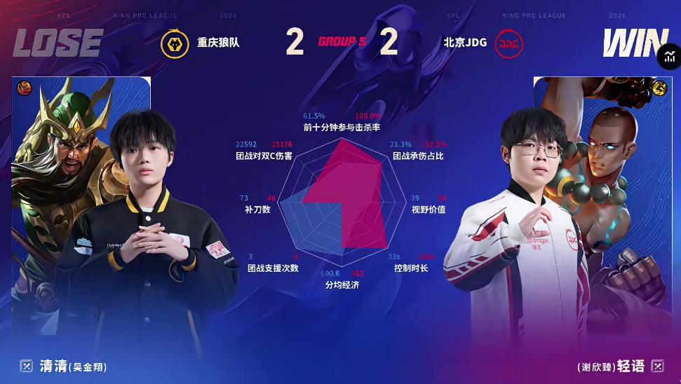 北京JDG 1-2 重庆狼队,本场选手表现你打几分?