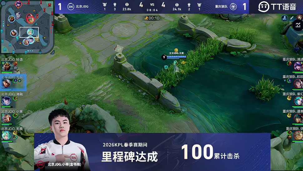 第三局比赛中,北京JDG.小寒达成里程碑:100累计击杀