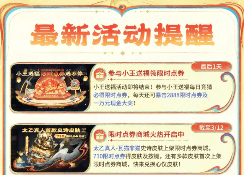 活动到期提醒:小王送福的限时点券再不用就过期了!