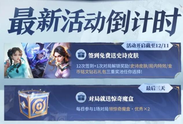 最新活动倒计时,签到领史诗皮肤、对局领惊奇魔盒