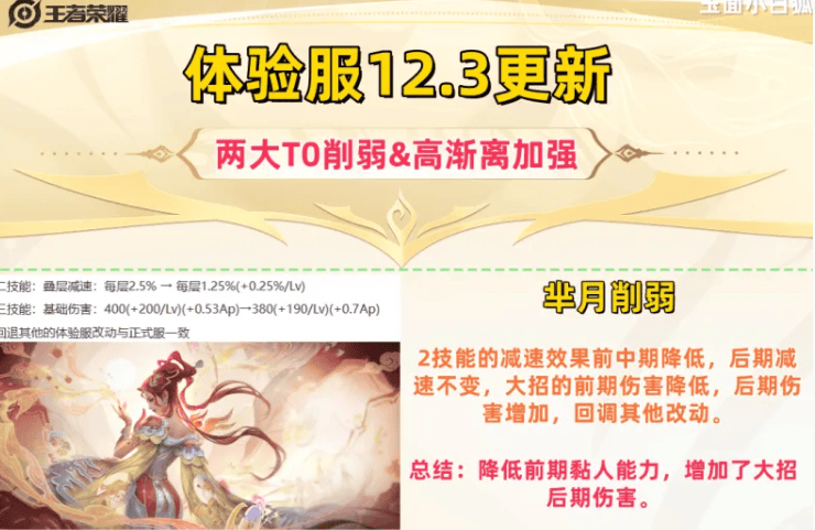 体验服更新:两大T0恶霸削弱,高渐离加强,元流之子起飞