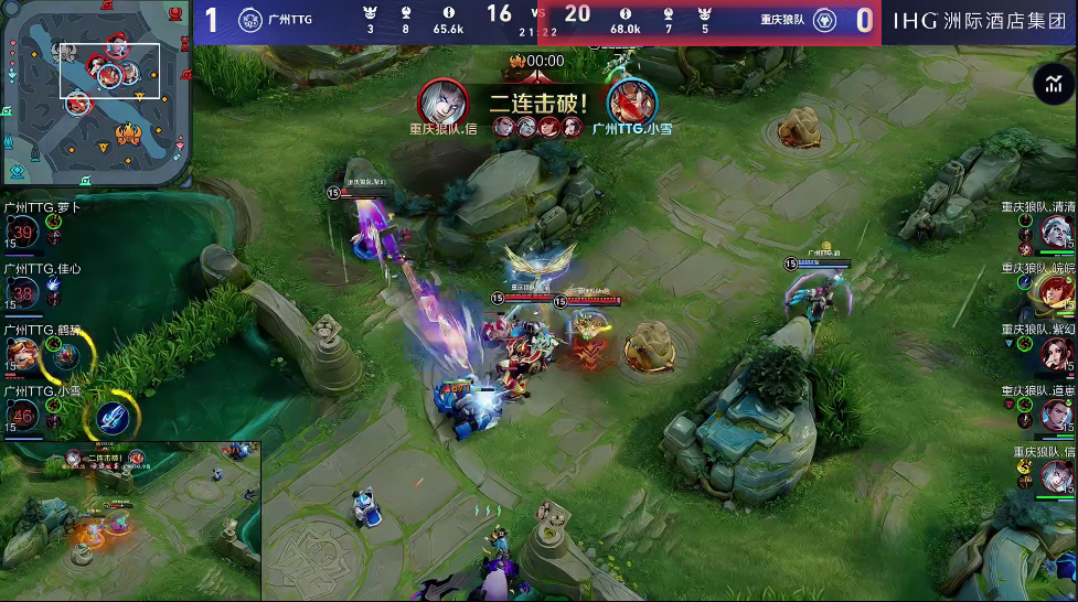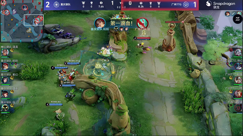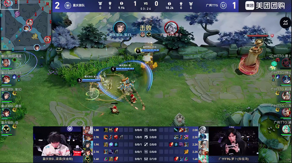 TTG/狼队第一局数据对比:萝卜关羽开团成功率高达百分百