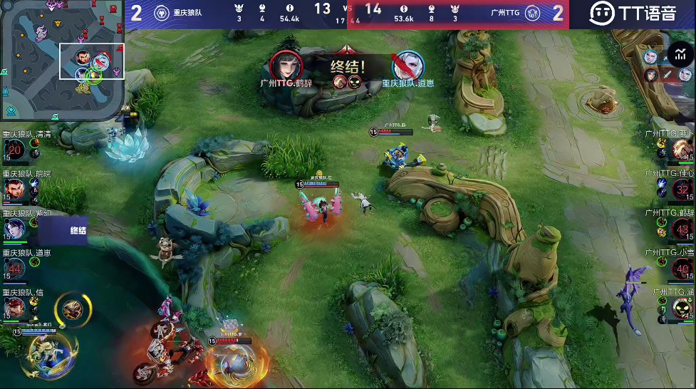 完美开团被TTG化解,小雪艾琳高效火力打出1换3