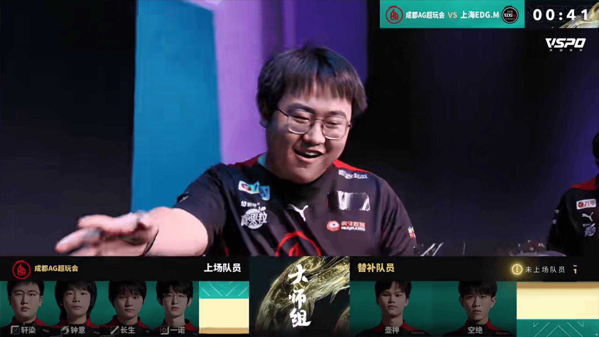 成都AG超玩会对阵上海EDG.M第四局比赛中,比赛出现暂停情况