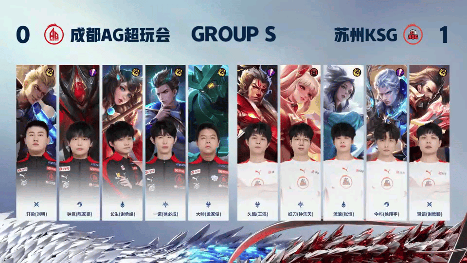 苏州KSG vs 成都AG首发出炉,冲击S组开门红