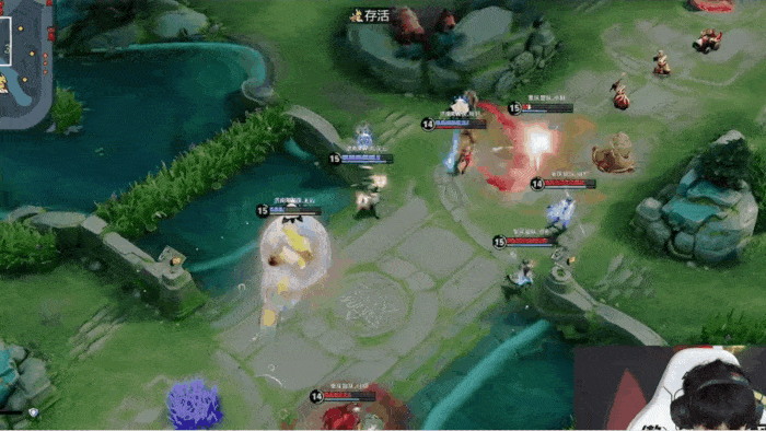 双方在中路河道打架,梦之队利用孙膑拉扯打出1换2