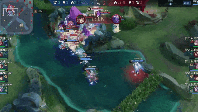 孙膑大招配合杨玉环二闪控到梦之队多人,佳美娜打出1换2