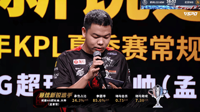 AG发文:大帅成功蝉联2024年KPL夏季赛常规赛最佳新锐选手!