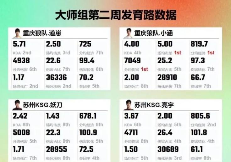 年总大师组第二周数据排行,哪些选手让你印象深刻?