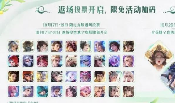 限定皮肤返场投票池出炉,哪些皮肤能进入前六?