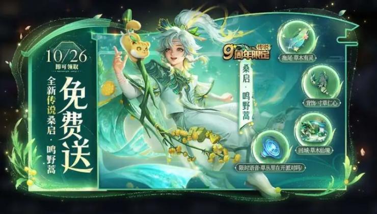 九周年皮肤品质升级,传说皮肤免费必得,草木套系皮肤来袭