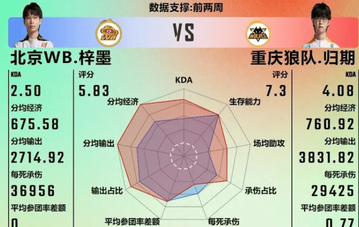 重庆狼队3-2北京WB赛后雷达图,哪组对位差距最大?