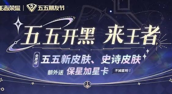 五五开黑来王者,送五五新皮肤、史诗皮肤,还有保星加星卡