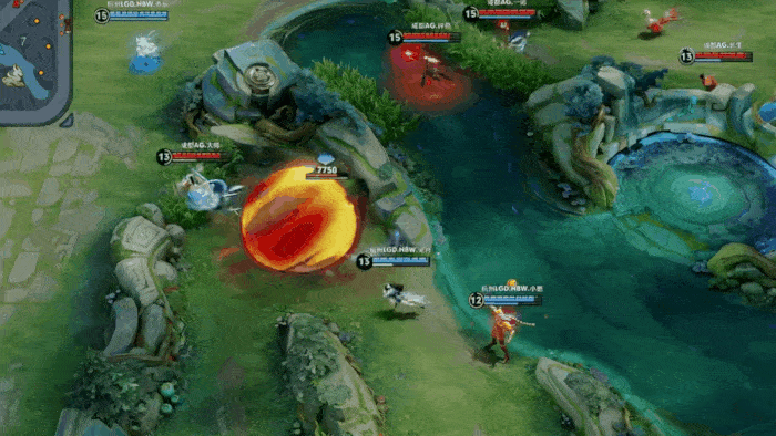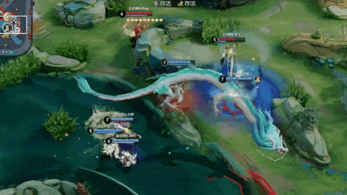 后羿大招命中王昭君,火舞闪现跟上,但伤害不够被敖隐击杀