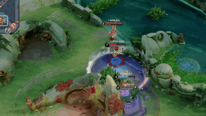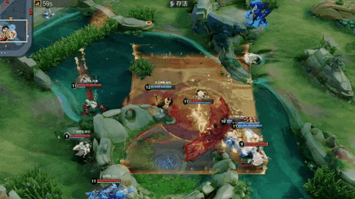 双方河道交火,哪吒直飞卤蛋,配合亚连从天而降完成击杀