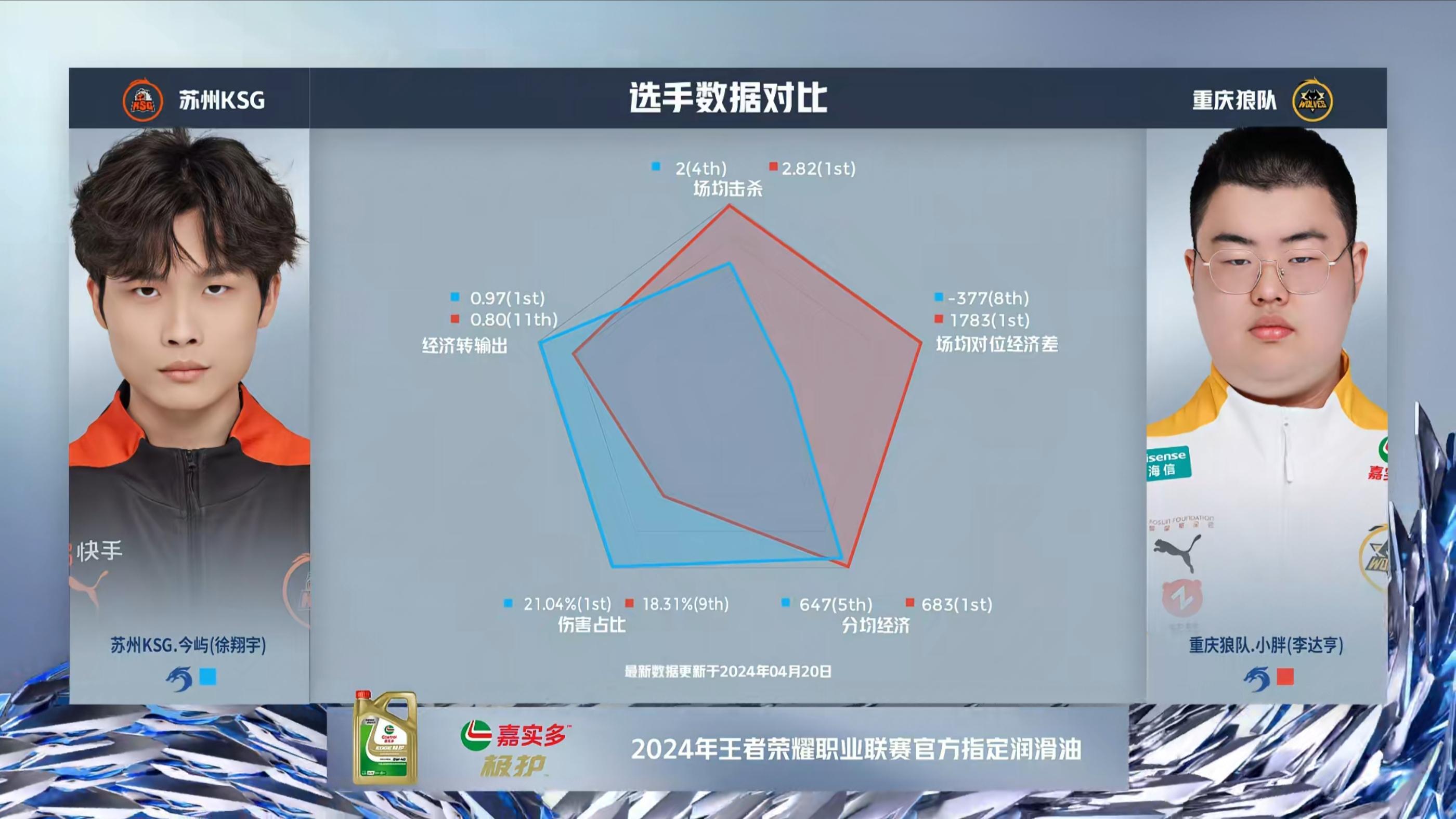 苏州KSG 1-1 重庆狼队,本场选手表现你打几分?