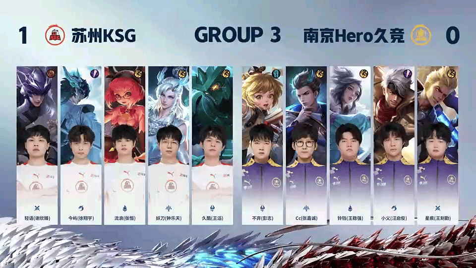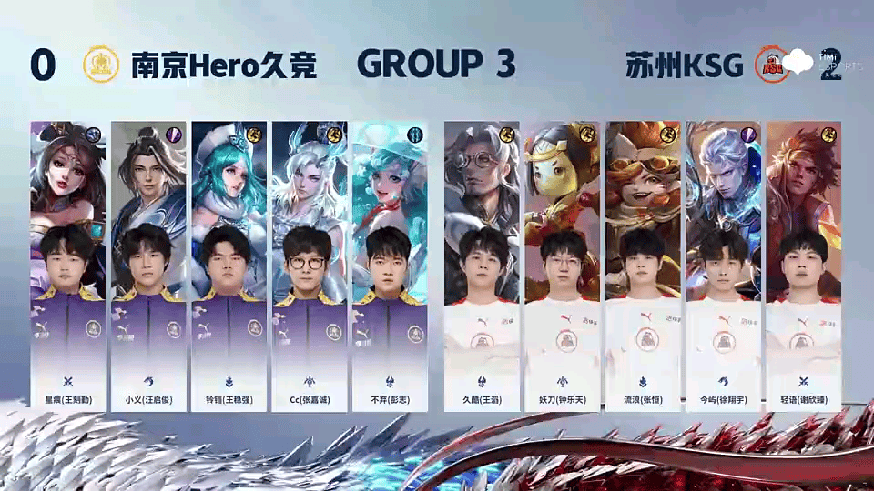 南京Hero对阵苏州KSG首发出炉:幻云、Cc首发登场