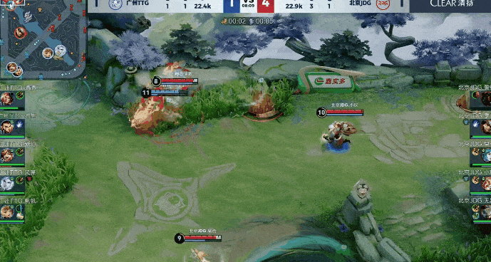 清清孙策边路带线,遭到JDG三人围剿,回头反打也无济于事