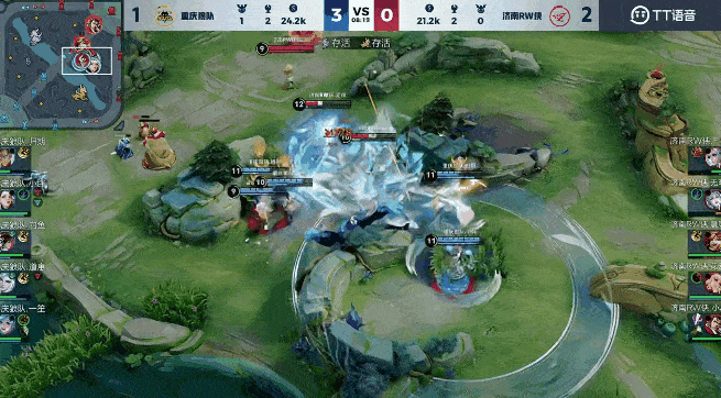 狼队下路3打2先逼出张飞大招,随后追至塔下击杀射辅两人