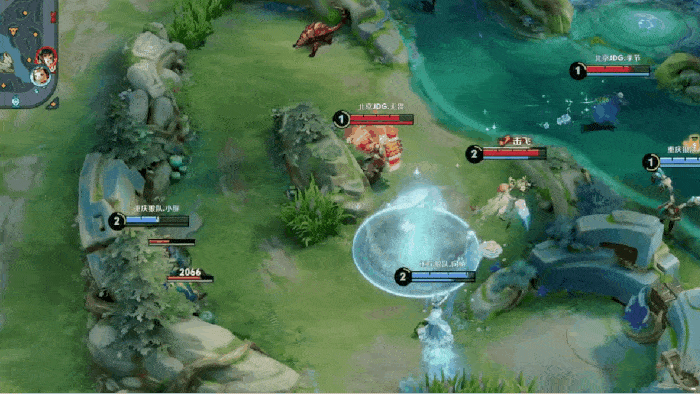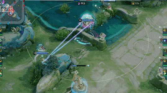 流浪海月抓住机会闪现大招,将梦岚鲁班拉进幻境,拿下一血