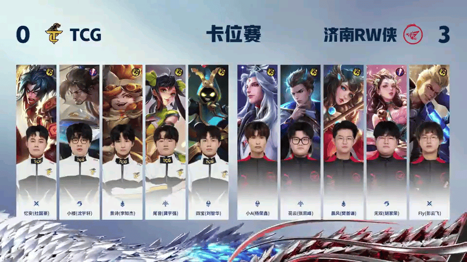 TCG 0-3 济南RW侠,本场选手表现你打几分?