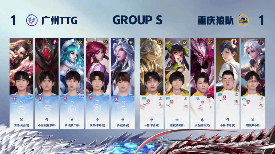 重庆狼队 1-1 广州TTG,本场选手表现你打几分?