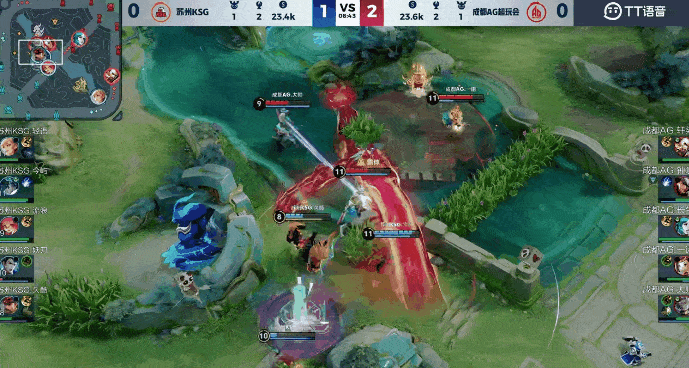 九尾甄姬以身入局开启团战,双方技能交互,LGD打出一换二