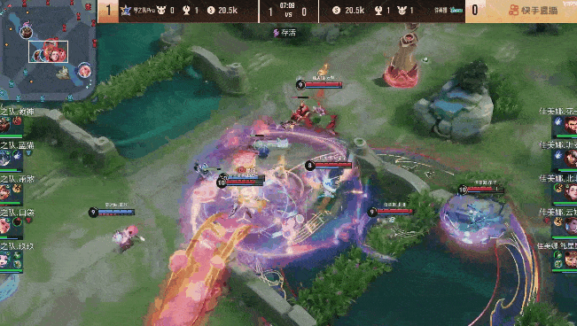 玖玖庄周奔狼开团,蒙犽贴脸输出击杀对面双C顺势一波