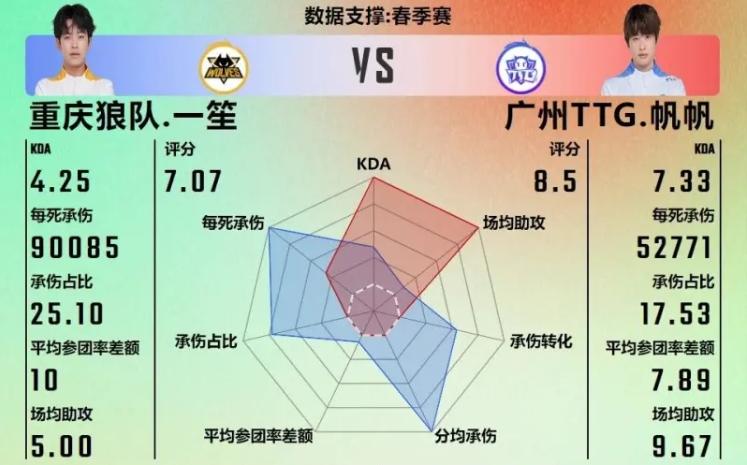 TTG 3-0 狼队赛后雷达图,哪组对位差距最大?