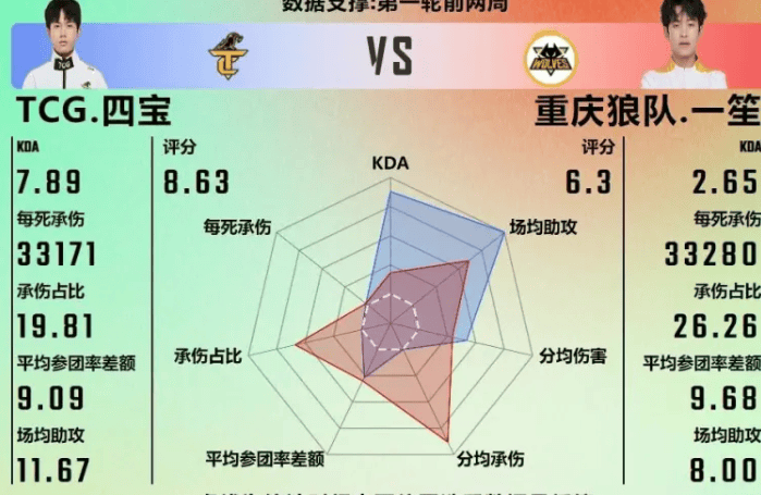 TCG 3-0狼队赛后雷达图,哪组对位差距最大?