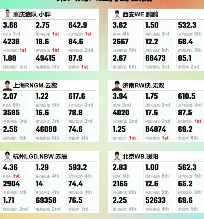 第二轮A组数据:小胖、小久、九尾多项数据第一