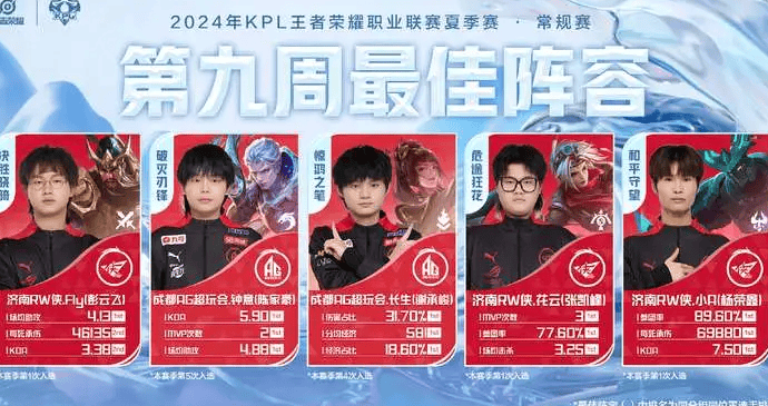第九周最佳阵容出炉,AG和RW包揽,Fly当选最佳选手