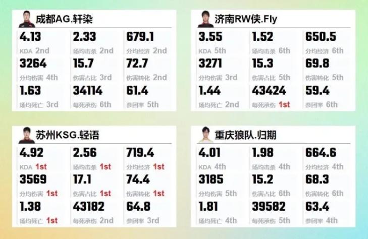第三轮S组中单数据雷达图,谁是本轮最佳中单?