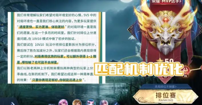 匹配机制优化,MVP不掉星上限,表现好的上分更快