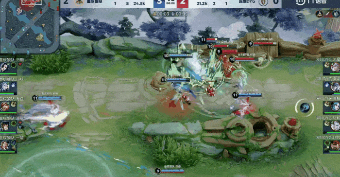 DYG想要绕后包夹孙尚香,但被狼队反打到高地,沈梦溪击杀镜